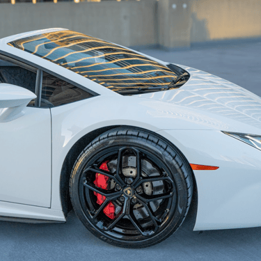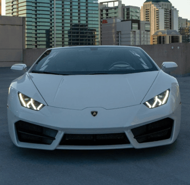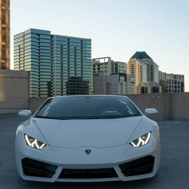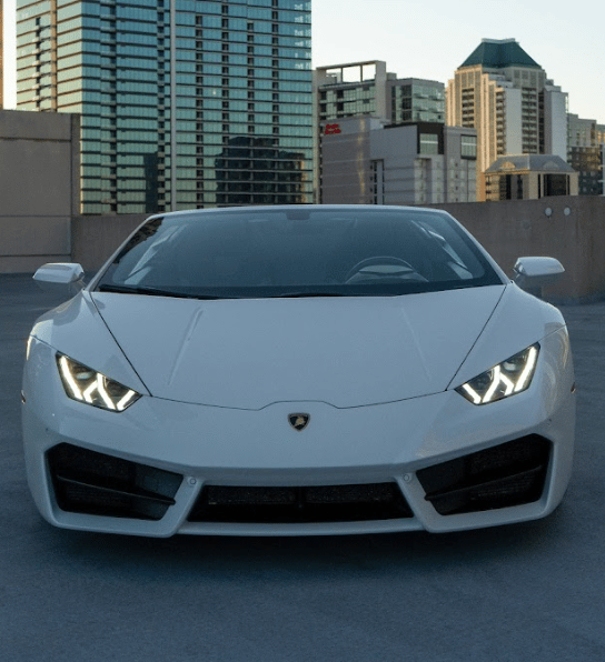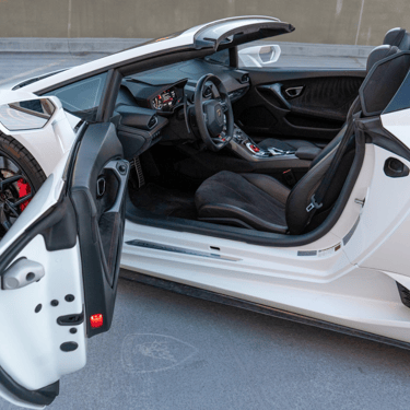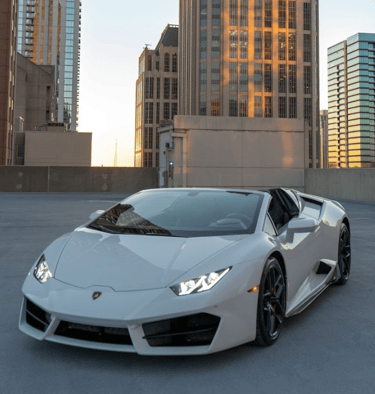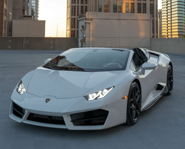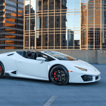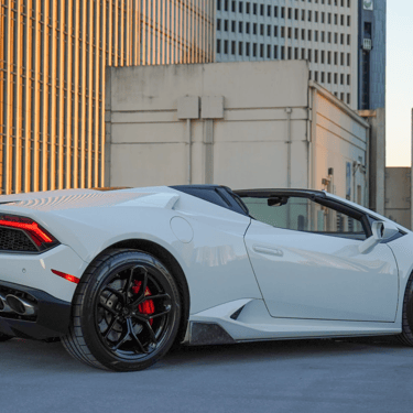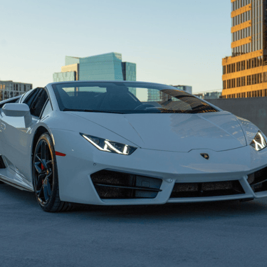 A sleek white Lamborghini Huracán that exudes pure performance and Italian artistry, with its sharp angular lines, aggressive front fascia, and low, aerodynamic stance that perfectly captures the spirit of speed and luxury.
