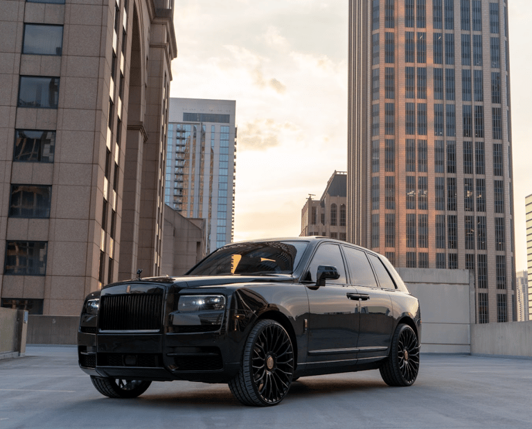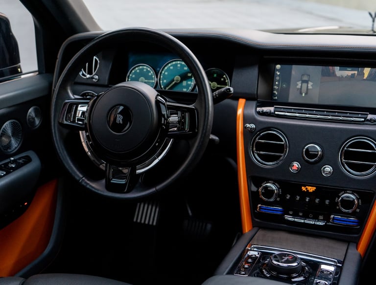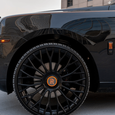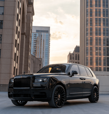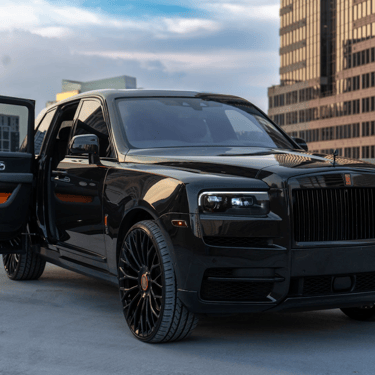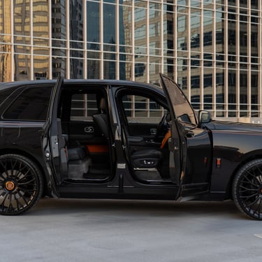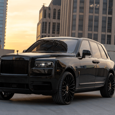 A stunning black Rolls-Royce Cullinan that radiates power, elegance, and sophistication, featuring a bold signature grille, sharp LED headlights, and a commanding presence that perfectly blends modern luxury with timeless craftsmanship.